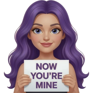 sexy girl with long purple hair holding a Now You're Mine HAYDEN & CALISTA sign emoji | AI Emoji Generator
