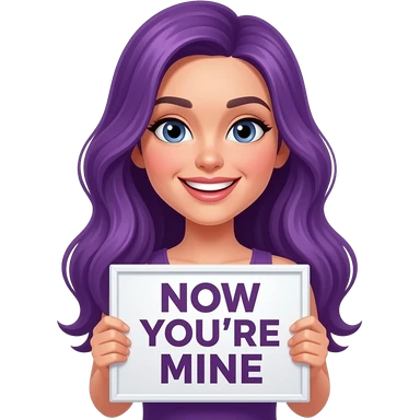 sexy girl with long purple hair holding a NOW YOU'RE MINE sign emoji