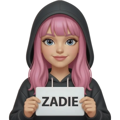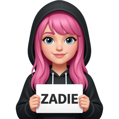 sexy girl with long pink wearing a black hoodie with the hood atop her headhair holding a ZADIE sign emoji