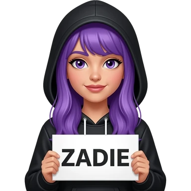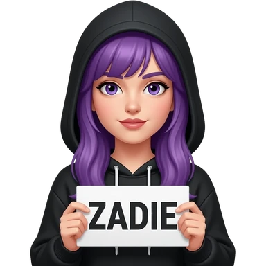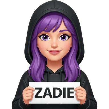 girl with long purple hair wearing a black hoodie holding a ZADIE sign emoji