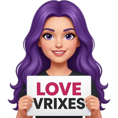 sexy girl with long purple hair holding a LOVE VRIXES sign emoji