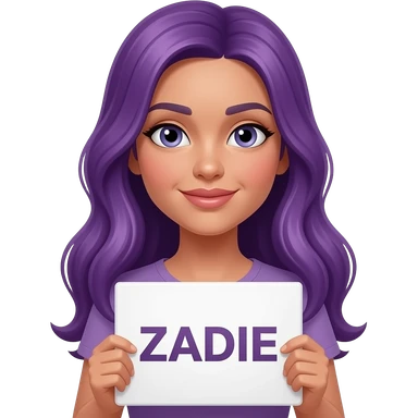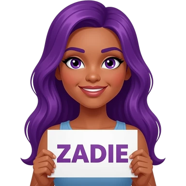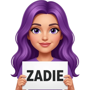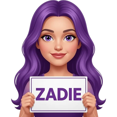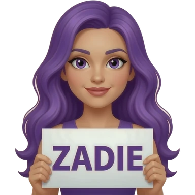 sexy girl with long purple hair holding a ZADIE sign emoji