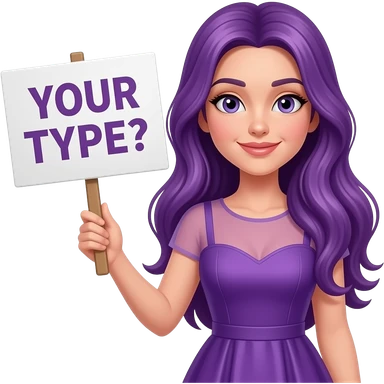 sexy girl with long purple hair wearing sexy dress holding a .... YOUR TYPE? sign emoji | AI Emoji Generator