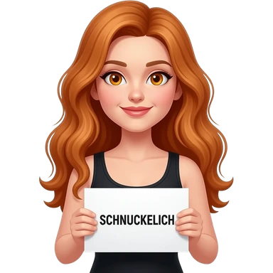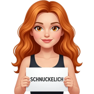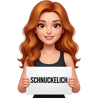 sexy girl with long wavy ginger hair and ginger eyes wearing a black tanktop is holding a white sign with SCHNUCKELICH written on it emoji