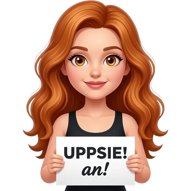 sexy girl with long wavy ginger hair and ginger eyes wearing a black tanktop is holding a white sign with UPPSIE! an! written on it emoji