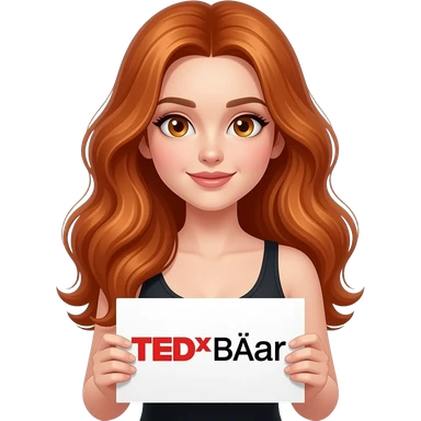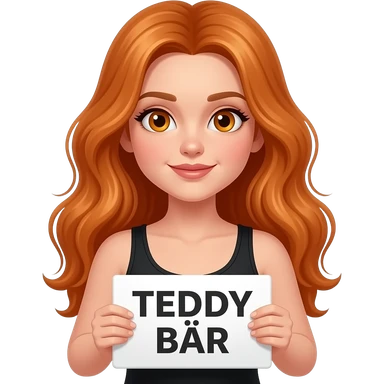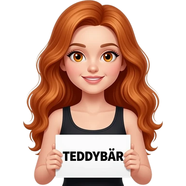 sexy girl with long wavy ginger hair and ginger eyes wearing a black tanktop is holding a white sign with TEDDYBÄR written on it emoji