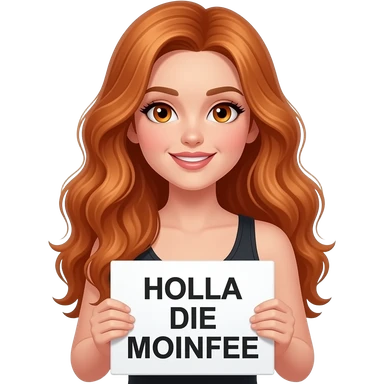 sexy girl with long wavy ginger hair and ginger eyes wearing a black tanktop is holding a white sign with HOLLA DIE MOINFEE written on it emoji