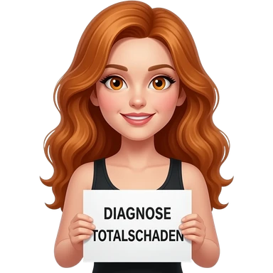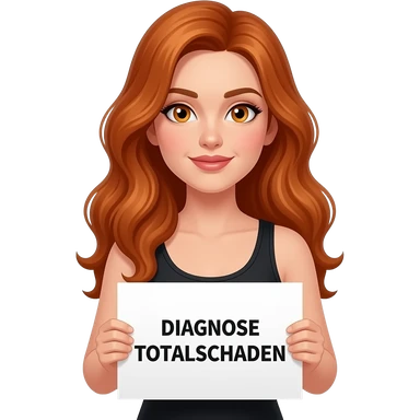 sexy girl with long wavy ginger hair and ginger eyes wearing a black tanktop is holding a white sign with DIAGNOSE TOTALSCHADEN written on it emoji