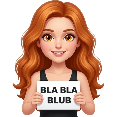 sexy girl with long wavy ginger hair and ginger eyes wearing a black tanktop is holding a white sign with BLA BLA BLUB written on it emoji