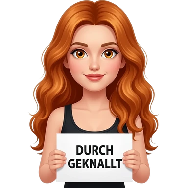 sexy girl with long wavy ginger hair and ginger eyes wearing a black tanktop is holding a white sign with DURCH GEKNALLT written on it emoji
