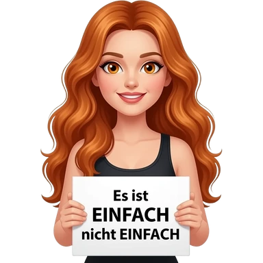 sexy girl with long wavy ginger hair and ginger eyes wearing a black tanktop is holding a white sign with Es ist EINFACH nicht EINFACH written on it emoji