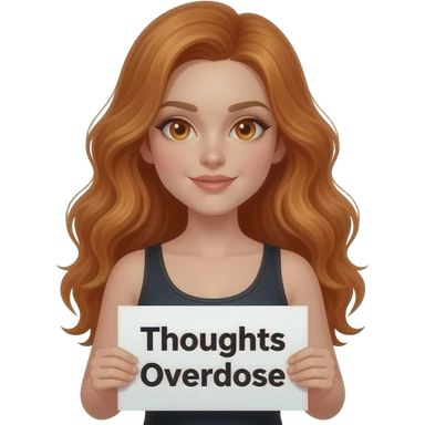 sexy girl with long wavy ginger hair and ginger eyes wearing a black tanktop is holding a white sign with GEDANKEN ÜBERDOSIS written on it emoji