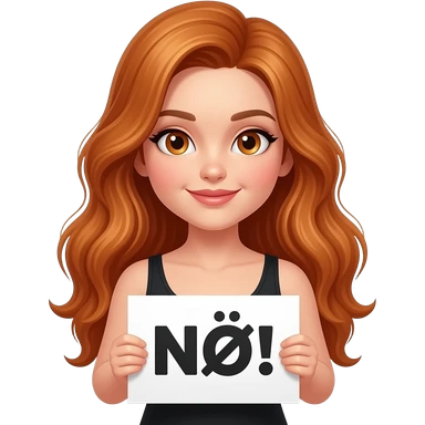sexy girl with long wavy ginger hair and ginger eyes wearing a black tanktop is holding a white sign with NÖ! written on it emoji