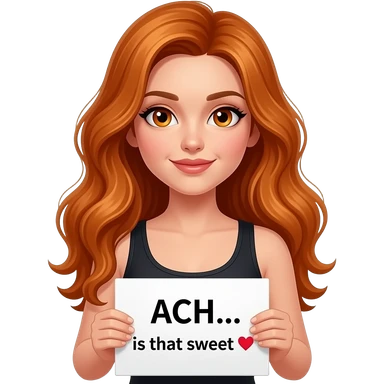 sexy girl with long wavy ginger hair and ginger eyes wearing a black tanktop is holding a white sign with ACHSOOOO! written on it emoji