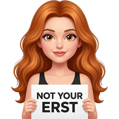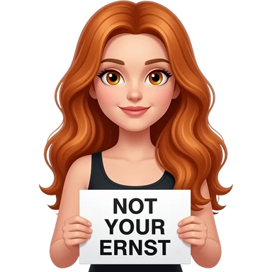 sexy girl with long wavy ginger hair and ginger eyes wearing a black tanktop is holding a white colored sign with NOT YOUR ERNST written on it emoji