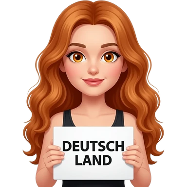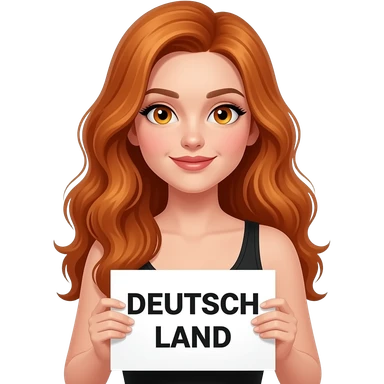 sexy girl with long wavy ginger hair and ginger eyes wearing a black tanktop is holding a white colored sign with DEUTSCH LAND written on it emoji
