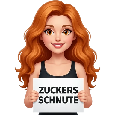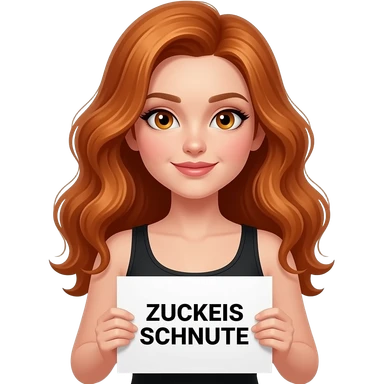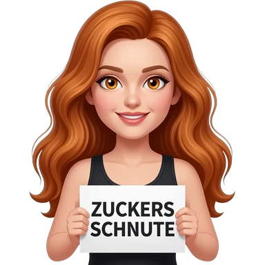sexy girl with long wavy ginger hair and ginger eyes wearing a black tanktop is holding a white colored sign with ZUCKER SCHNUTE written on it emoji