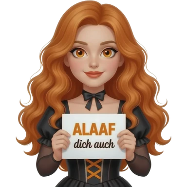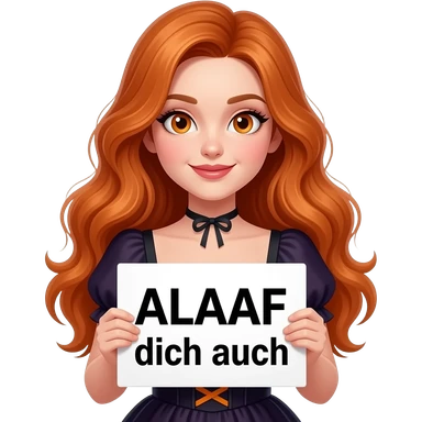sexy girl with long wavy ginger hair and ginger eyes wearing a halloween dress is holding a white colored sign with ALAAF dich auch written on it emoji