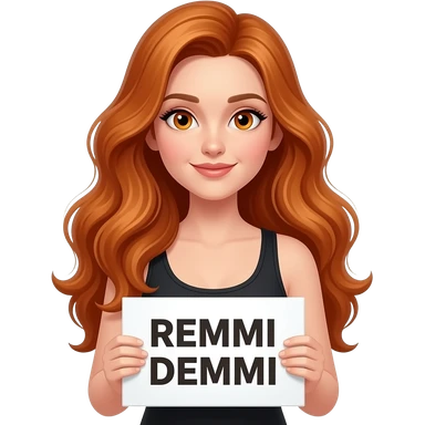sexy girl with long wavy ginger hair and ginger eyes wearing a black tanktop is holding a white colored sign with REMMI DEMMI written on it emoji