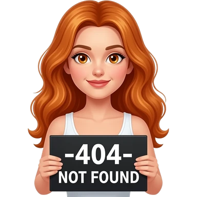 sexy girl with long wavy ginger hair and ginger eyes wearing a white tanktop is holding a black colored sign with -404- NOT FOUND written on it emoji
