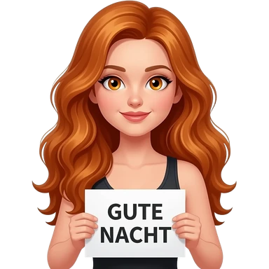 sexy girl with long wavy ginger hair and ginger eyes wearing a black tanktop is holding a white colored sign with GUTE NACHT written on it emoji