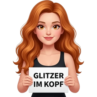 sexy girl with long wavy ginger hair and ginger eyes wearing a black tanktop is holding a white colored sign with GLITZER IM KOPF written on it emoji