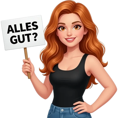 sexy girl with long wavy ginger hair and ginger eyes wearing a black tanktop is holding a white colored sign with ALLES GUT? written on it emoji