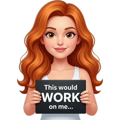 sexy girl with long wavy ginger hair and ginger eyes wearing a white tanktop is holding a black colored sign with This would WORK on me... written on it emoji