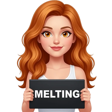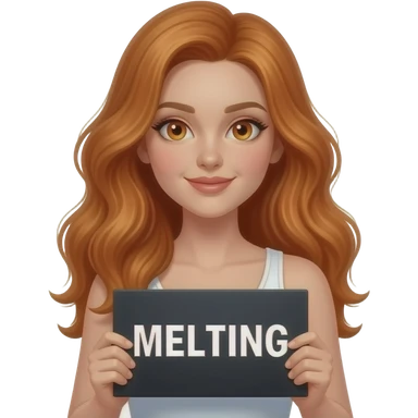 sexy girl with long wavy ginger hair and ginger eyes wearing a white tanktop is holding a black colored sign with MELTING written on it emoji