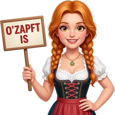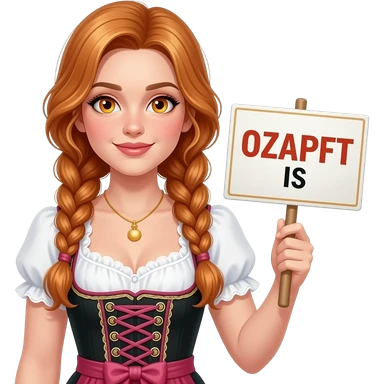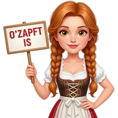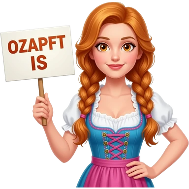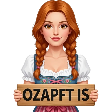 sexy girl with long wavy ginger braids and ginger eyes wearing a dirndl is holding a sign with OZAPFT IS written on it emoji
