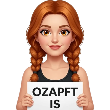 sexy girl with long wavy ginger braids and ginger eyes wearing a black tanktop is holding a sign with OZAPFT IS written on it emoji