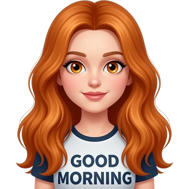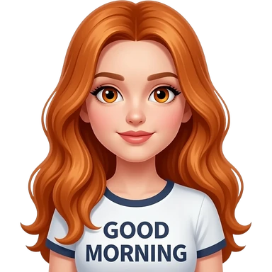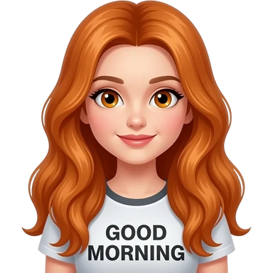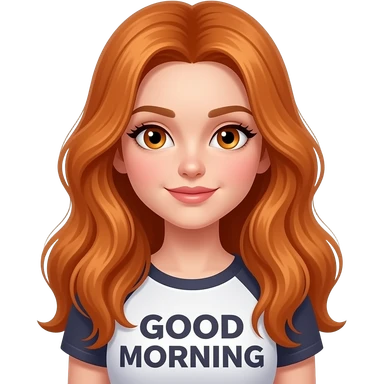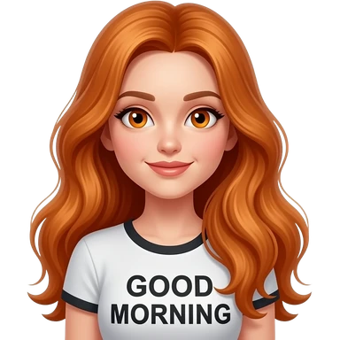 sexy girl with overlong ginger hair and ginger eyes a top with GOOD MORNING written on it emoji