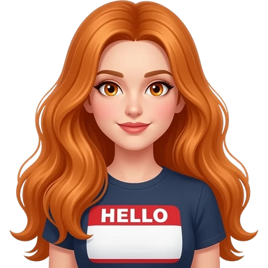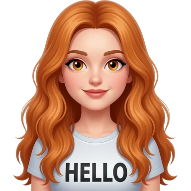 sexy girl with overlong ginger hair and ginger eyes a top with HELLO written on it emoji