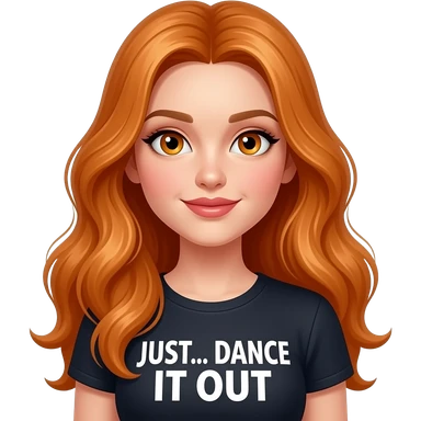 sexy girl with overlong ginger hair and ginger eyes a top with JUST... DANCE IT OUT written on it emoji