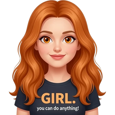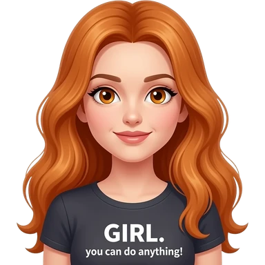sexy girl with overlong ginger hair and ginger eyes a top with GIRL... you can do anything! written on it emoji