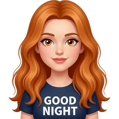 sexy girl with overlong ginger hair and ginger eyes a top with GOOD NIGHT written on it emoji