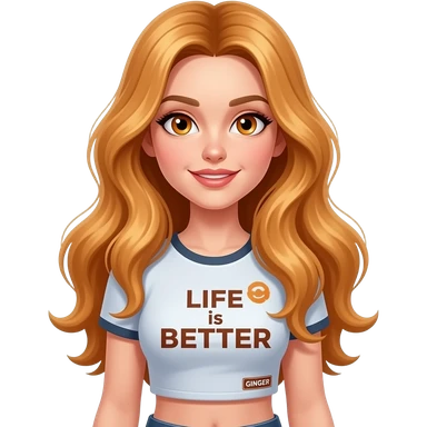 sexy girl with overlong ginger hair and ginger eyes a top with LIFE is BETTER with a GINGER written on it emoji