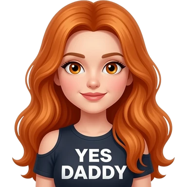 sexy girl with overlong ginger hair and ginger eyes a top with YES DADDY written on it emoji