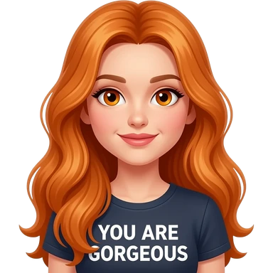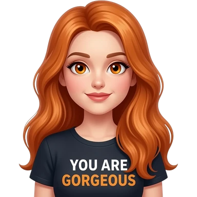 sexy girl with overlong ginger hair and ginger eyes a top with YOU ARE GORGEOUS written on it emoji