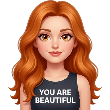 sexy girl with overlong ginger hair and ginger eyes a top with YOU ARE BEAUTIFUL written on it emoji