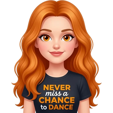 sexy girl with overlong ginger hair and ginger eyes a top with NEVER miss a CHANCE to DANCE written on it emoji
