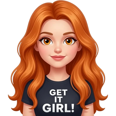 sexy girl with overlong ginger hair and ginger eyes a top with GET IT GIRL! written on it emoji