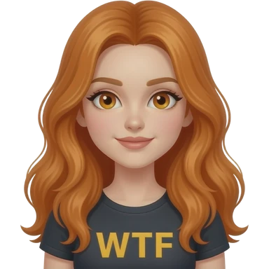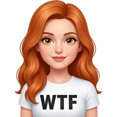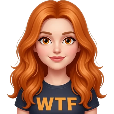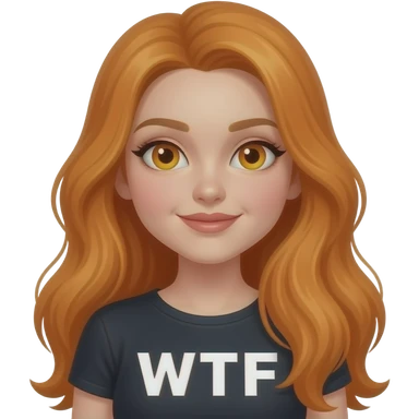 sexy girl with overlong ginger hair and ginger eyes a top with WTF written on it emoji