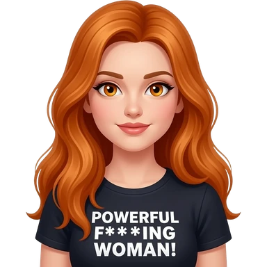 sexy girl with overlong ginger hair and ginger eyes a top with POWERFUL F***ING WOMAN! written on it emoji