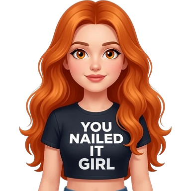 sexy girl with overlong ginger hair and ginger eyes a top with YOU NAILED IT GIRL written on it emoji