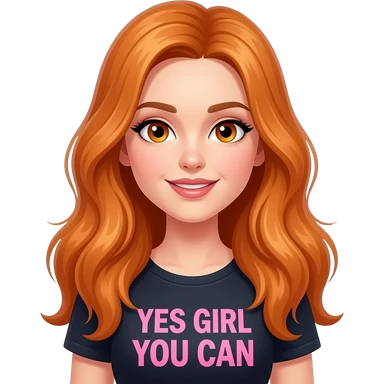 sexy girl with overlong ginger hair and ginger eyes a top with YES GIRL YOU CAN written on it emoji
