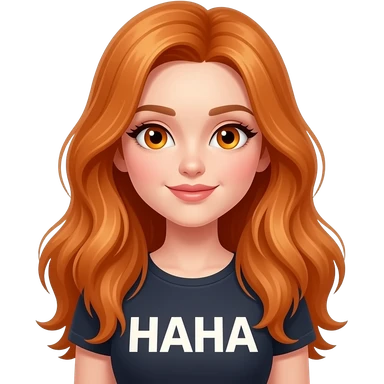 sexy girl with overlong ginger hair and ginger eyes a top with HAHA written on it emoji