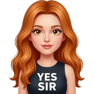 sexy girl with overlong ginger hair and ginger eyes a top with YES SIR written on it emoji