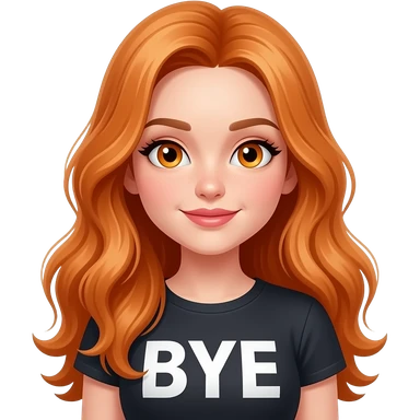 sexy girl with overlong ginger hair and ginger eyes a top with BYE written on it emoji