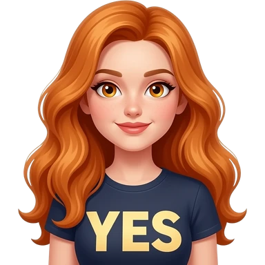 sexy girl with overlong ginger hair and ginger eyes a top with YES written on it emoji